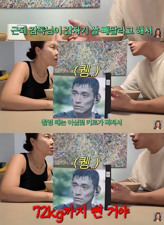 정석원은 "근데 갑자기 감독님이 살을 빼달라고 했다. 촬영 때는 15kg가 아니라 20kg 넘게 빠졌다. 72kg까지 뺐다"며 두 달 만에 98kg에서 72kg까지 26kg을 감량했음을 밝혔다.