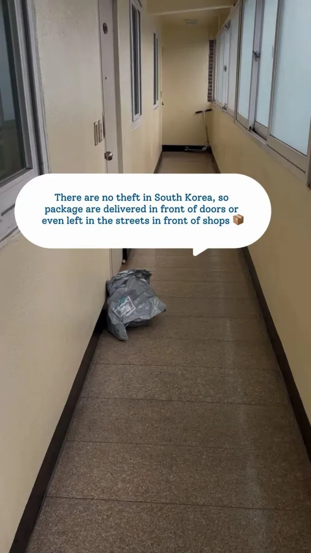 한국에선 도난 사건이 없어서 그런지 택배가 문 앞에 있거나 상점 앞 거리에 있음