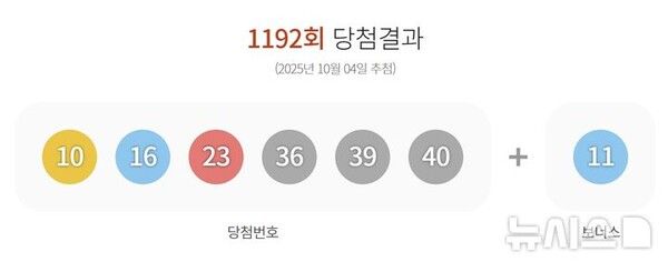 4일 제1192회 동행복권 로또 추첨 결과 '10, 16, 23, 36, 39, 40'이 1등 당첨 번호로 결정됐다. 2등 보너스 번호는 '11'이다.