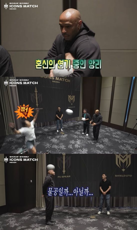 이들은 18년 전 '무한도전'에서 선보였던 물공 헤딩을 다시 시도했다. 앞서 지난해 열린 아이콘 매치를 앞두고도 앙리는 따로 물공 헤딩을 진행한 바 있다.