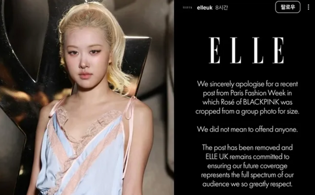 논란이 확산되자, 엘르 UK는 뒤늦게 로제의 단독 사진을 업로드했지만 사과 없는 임시방편으로 보였다는 비판이 이어졌습니다. 팬들의 분노가 가라앉지 않자 잡지 측은 결국 사과문을 게재했습니다. 엘르 UK는 공식 입장에서 “사진 크기 조정 과정에서 발생한 단순 실수일 뿐, 불쾌감을 주려는 의도는 없었다”고 해명했습니다. 이어 “문제가 된 게시물은 삭제했으며, 앞으로 다양성을 존중하는 보도를 이어가겠다”고 약속했습니다.