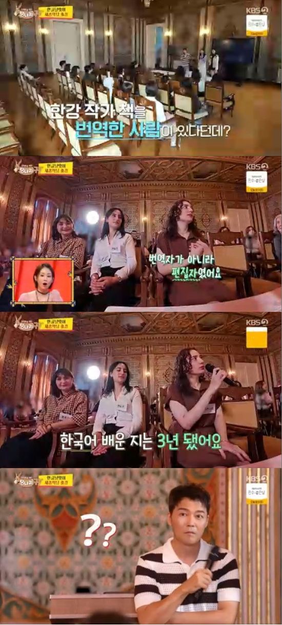 강의실에 들어선 전현무는 수강생들 중 한강 작가의 책 번역을 맡은 분이 있다고 들었다면서 어떤 분인지 궁금해 했다.