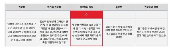 뉴시스 보도에 따르면, NECA는 지난 7월말 암 환자 대상 면역증강용 비급여 주사제 가운데 싸이모신알파1, 비스쿰알붐, 이뮤노시아닌 등 3종에 대해 국내 임상 상황에서 통상 치료에 추가 투여하는 것을 '권고하지 않음'으로 결정한 바 있다.