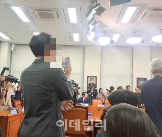 [이데일리 한광범 기자] 요즘 국회 내에선 의원들의 발언 모습을 그들의 보좌진이 휴대전화를 이용해 촬영하는 모습을 어렵지 않게 볼 수 있다.