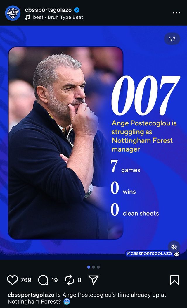 파브리치오 로마노도 자신의 SNS에 "포스테코글루는 노팅엄의 새 감독으로 부임한 후 7경기에서 한 경기도 승리하지 못했다"고 조명했다.