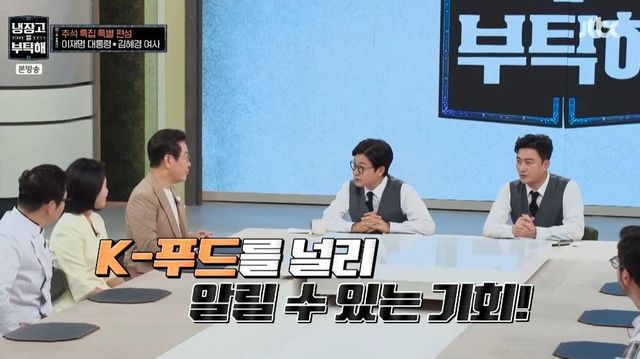 이 대통령은 ‘냉부해’ 출연 이유에 대해 “추석하면 먹는 게 중요하다. 문화가 자산이고 문화의 핵심은 음식이다. 음식은 안 지나간다. 한번 고정이 되면 잘 바뀌지 않고, 지속성이 있다. 한국문화를 수출하는데 차세대 핵심산업으로 K푸드가 경쟁력이 있다. 게다가 이 프로그램이 인기가 많다고 들었다”라고 밝혔다.