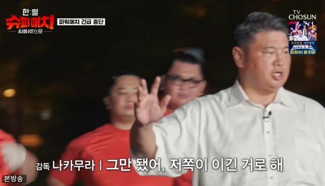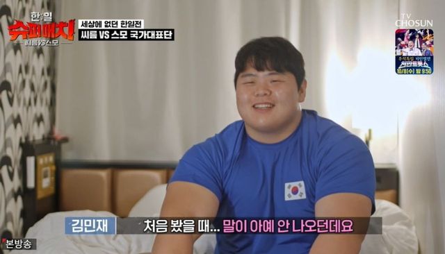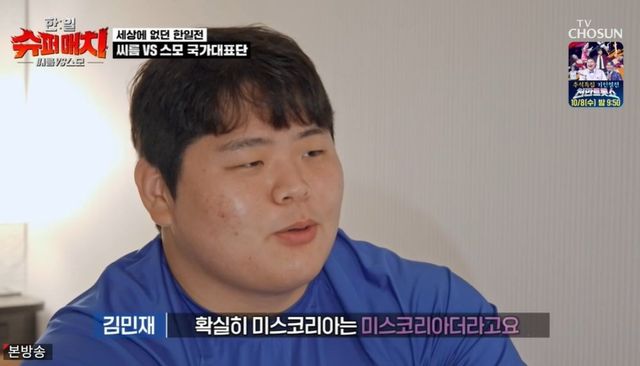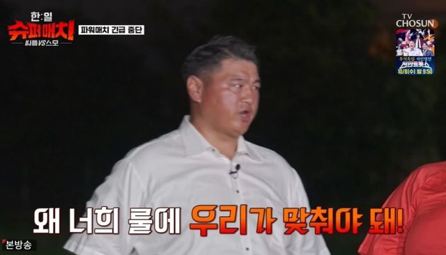 [TV리포트=남금주 기자] 한국 씨름팀 김민재가 사전 대결에서 승리했지만, 일본 스모팀 감독의 항의로 경기가 중단됐다.
