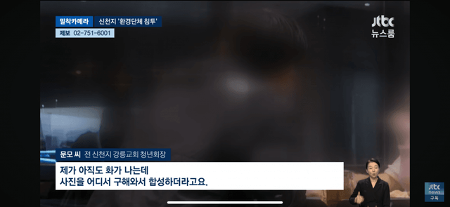 환경단체 잠입해서 포교하던거 걸려서 추궁하는데