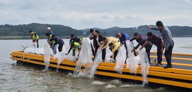 지난달 25일 충남 서산시 지곡면 대호지 환성리 일원에서는 충남도 수산자원연구소 민물고기센터 주관으로 붕어 방류 행사가 진행됐다.