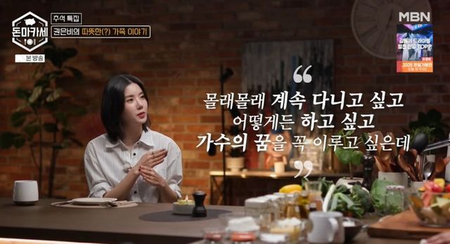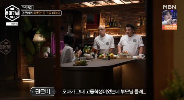 7일 MBN ‘돈마카세’에선 권은비가 게스트로 출연해 홍석천, 이원일 셰프로부터 통베이컨 크림 파스타와 돈마호크 스테이크를 대접받았다.