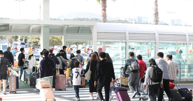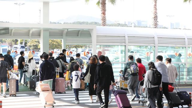제주국제공항에 도착한 관광객들이 렌터카 하우스로 이동하고 있다. / 뉴스1