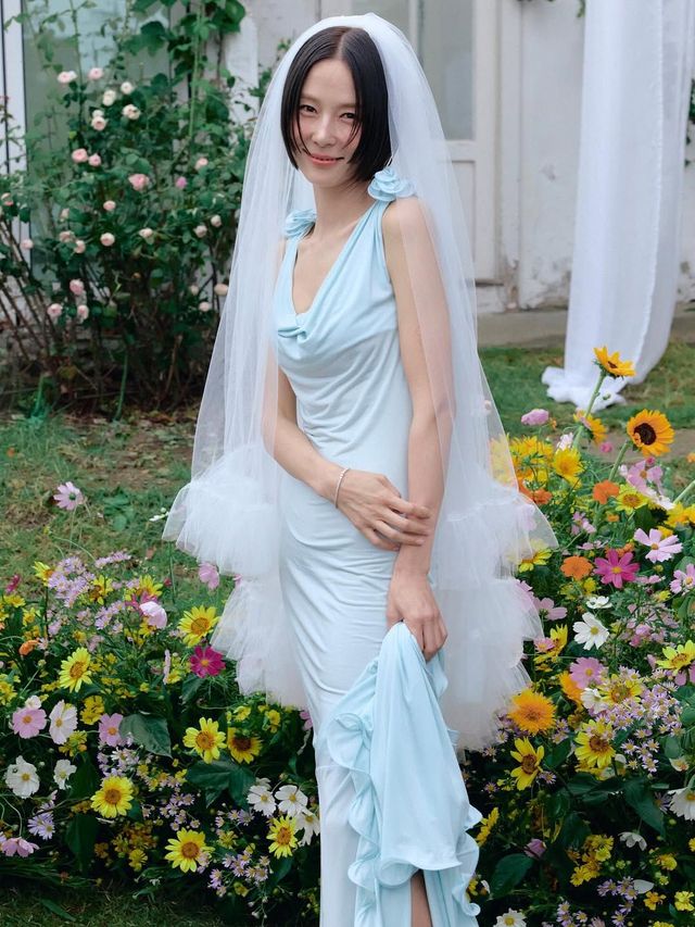 본식에서는 넥라인을 완전히 덮은 하이넥 디자인의 심플한 드레스를 선택했다. 군더더기 없는 실루엣 속에서 고급스러운 소재감과 완벽한 핏이 돋보였고 유행보다 자신만의 미니멀한 감성을 우선시한 김나영다운 선택이었다.