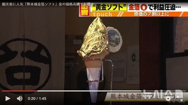 이 가게에서 판매하는 말차를 사용한 ‘구마모토성 금박 소프트크림’은 금박으로 장식되는데, 최근 금값이 급등하면서다.