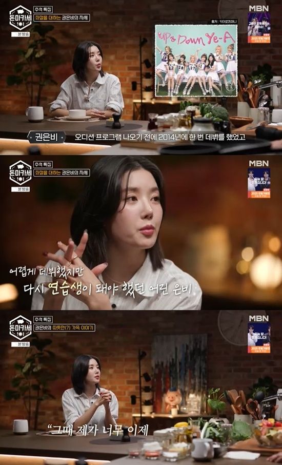 권은비는 쉽지 않았던 무명 시절도 떠올렸다. 오디션 프로그램 출신인 권은비는 "2014년에 데뷔를 했었다. 많이 알려지지 않아 해체했다. 4년 연습하고 2018년에 다시 오디션 프로그램에 나갔다"며 아이즈원으로 재데뷔한 과정을 설명했다.