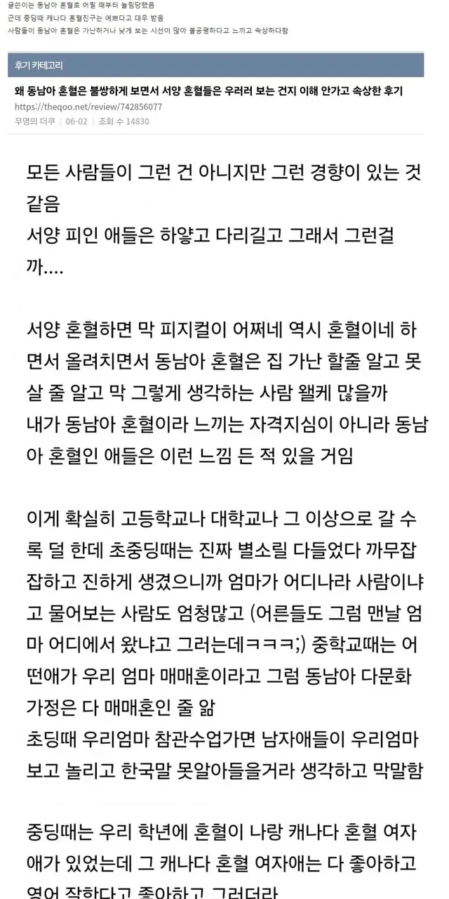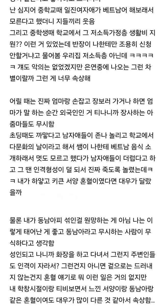 서양혼혈만 좋게봐서 슬픈 동남아혼혈,,