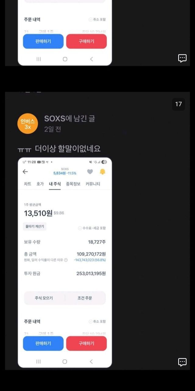 엔비디아가 하락하면 인텔이 올라서 번갈아가며 soxs 죽이던 시기