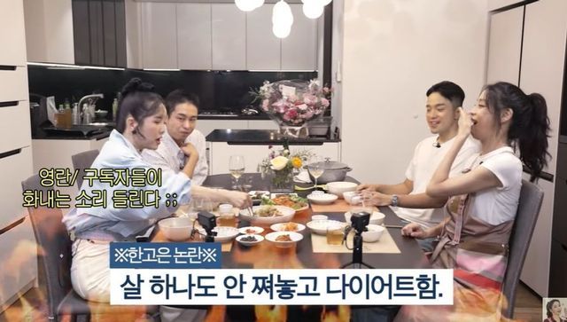 그러면서 한고은은 “요즘 우리 다이어트한다. 그렇게 살이 찐다?”라며 “2kg이 쪘다. 갱년기지 않나”고 털어놓았다. 그러자 남편은 “2kg 쪘으면 51kg이냐”라고 했고, 장영란은 “언니가 다이어트한다고?”라고 놀라다 “갑자기 구독자들이 화내는 소리 들린다”고 밝혔다.
