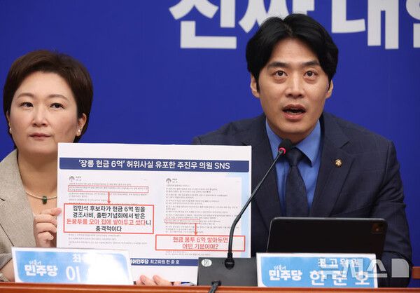 뉴시스 보도에 따르면, 더불어민주당이 10일 이재명 대통령과 김현지 대통령실 제1부속실장 사이 '경제 공동체' 의혹 발언을 한 김미나 경남 창원시의원(국민의힘)에 대한 법적 조치에 나서겠다고 밝혔다.