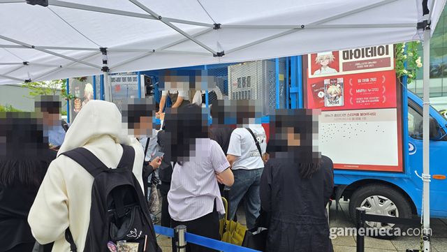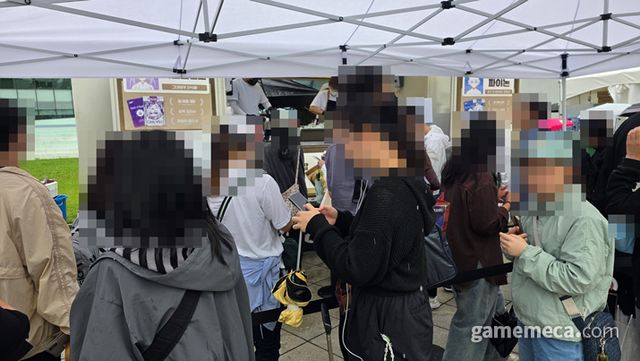 ▲ 저 멀리서도 보이는 긴 줄과 ‘젠존제’의 마스코트 대형 이아스 (사진: 게임메카 촬영)