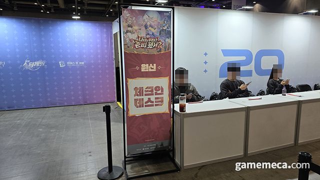 ▲ 입장 전부터 각 게임에 맞춰 체크인 데스크를 운영하고 있습니다 (사진: 게임메카 촬영)