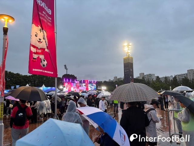 경기장 주변 한쪽에서는 한국의 승리를 기원하는 팬들이 노래를 부르며 구호를 외치고 있었고 기념 포토존에는 사진을 촬영하기 위한 팬들의 줄이 늘어졌다. 대부분의 팬들이 비가 오는 날씨임에도 웃는 얼굴로 경기를 기다리고 있었다. 비가 쏟아지면서 체감 온도도 내려갔지만 축구 팬들의 열기는 오히려 후끈해졌다.