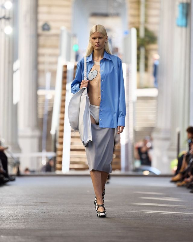 벨기에 앤트워프 출신 디자이너 줄리 케겔스는 이번 26 봄 여름 파리 패션위크에서 브랜드의 첫 공식 런웨이를 선보였어요. 앤트워프 왕립예술아카데미를 졸업한 그는 알라이아에서 경험을 쌓은 뒤, 2024년에 자신의 이름을 딴 브랜드를 론칭했죠. 이번 컬렉션의 타이틀은 ‘Quick Change’. 런웨이 중간에 스냅이나 후크를 풀면 실루엣이 즉시 변하는, 마치 마술 같은 테크닉을 선보였어요.