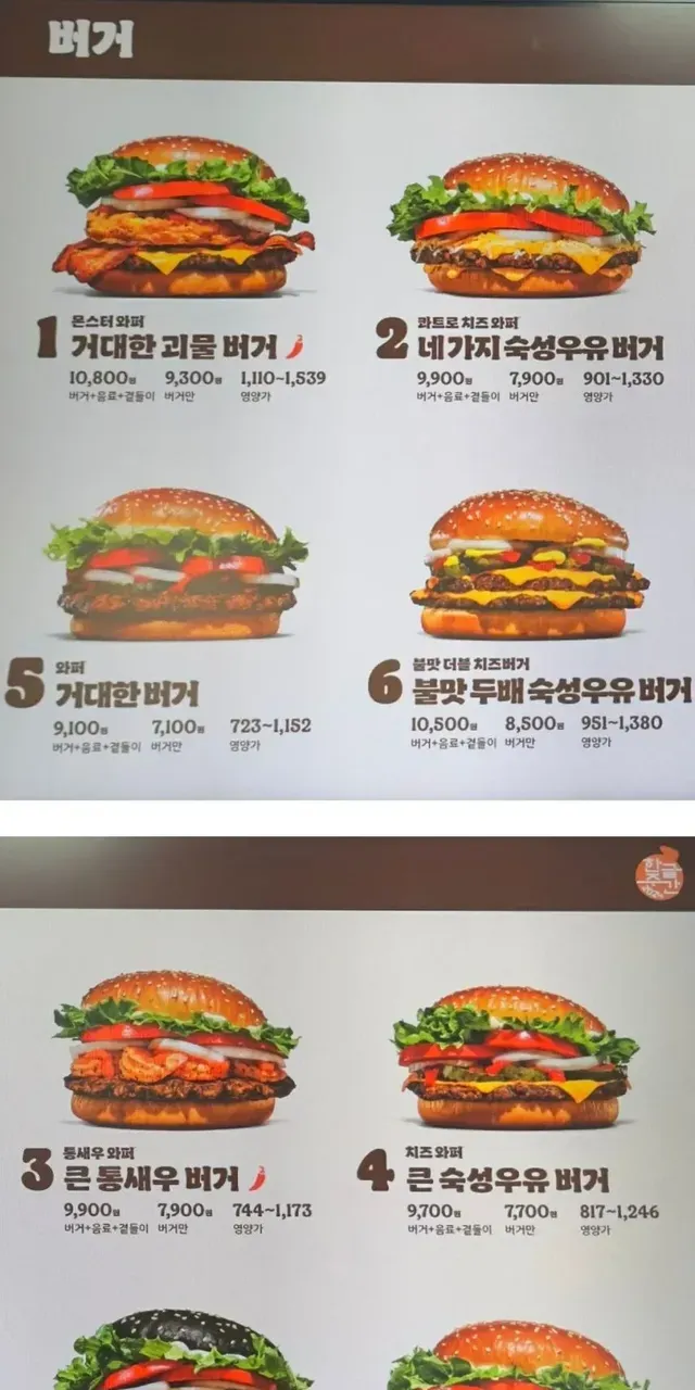 위 메뉴판은 2024년 한글날 버거킹 메뉴판이라고 하네요.