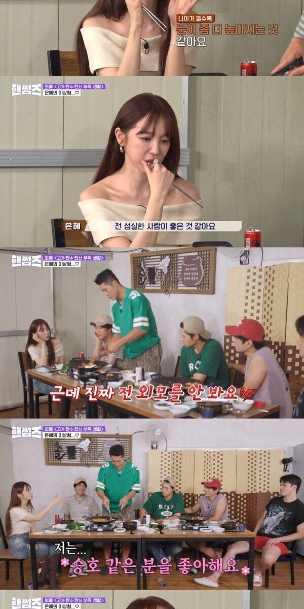 윤은혜는 자신의 이상형으로 "성실한 사람이 좋다. 외모는 잘 안 본다"고 고백했지만, 이어진 질문에서 배우 신승호를 이상형으로 꼽아 멤버들의 야유를 받았다. 윤은혜는 이어 "요리가 취미라 내가 만든 요리를 잘 먹어주는 사람이 좋다"고 덧붙였다.