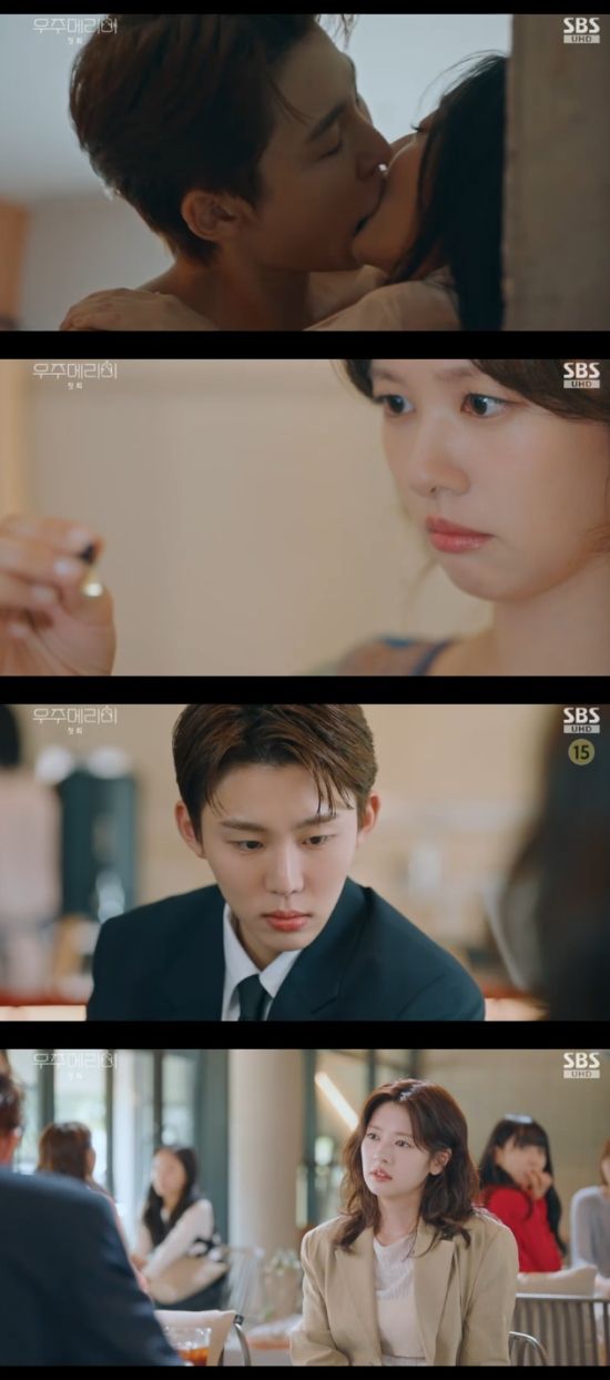 10일 방송된 SBS 새 금토드라마 '우주메리미' 1회에서 유메리(정소민 분)이 약혼자 김우주(서범준)의 외도 사실을 알게됐다.