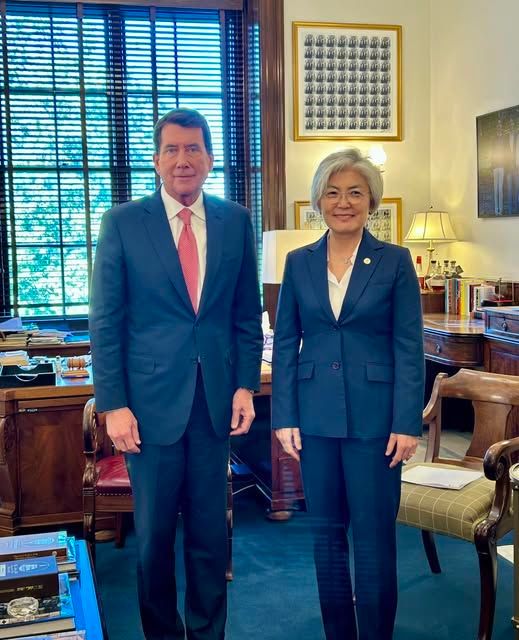 강경화 신임 주미대사가 도널드 트럼프 대통령 측근으로 분류되는 빌 해거티(공화·테네시) 상원의원과 만나 한미동맹 발전 방안을 논의했다.