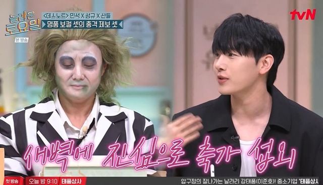 11일 방송된 tvN ‘놀라운 토요일'(이하 ‘놀토’)에서는 뮤지컬 ‘데스노트’의 김민석, 산들, 김성규가 출연했다.