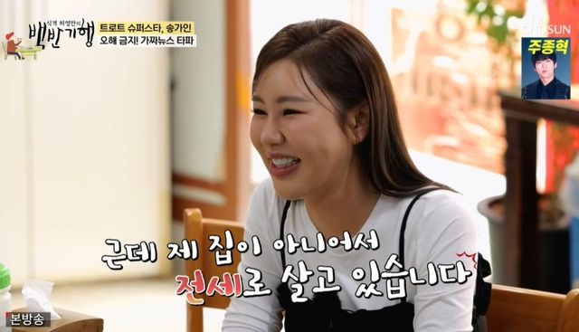 현재는 서울 역삼동에 거주 중이라는 송가인은 “제 집이 아니라 전세로 살고 있다”라고 밝혔다. 허영만은 “그동안 집 여러 채 살 돈은 벌었을 거 아니냐”라고 했지만, 송가인은 “사람들이 다 그렇게 생각한다. 유튜브에도 가짜 뉴스로 제가 이미 건물이 산 사람이 되어 있더라. 그만큼 못 벌었는데”라며 “누구랑 결혼하고, 애가 둘이라는 둥 별소리가 많다”라며 모두 가짜 뉴스라고 강조했다.