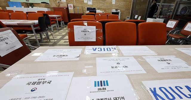 이재명 정부 첫 국정감사를 사흘 앞둔 지난 10일 서울 여의도 국회 법제사법위원회 앞 대기 장소에 검찰청 등 피감기관 직원들이 자리를 선점하기 위해 붙여 둔 종이에 기관명이 적혀 있다 / 연합뉴스