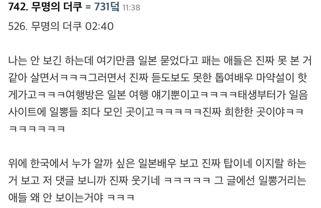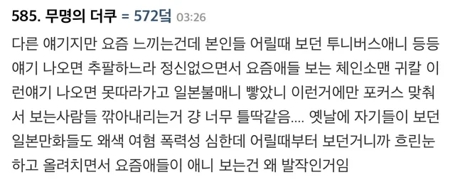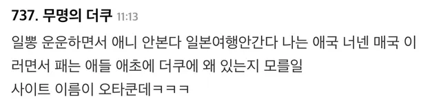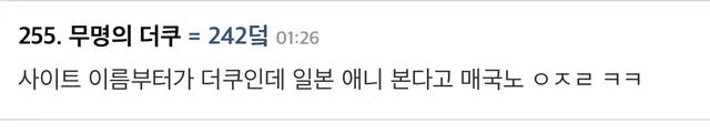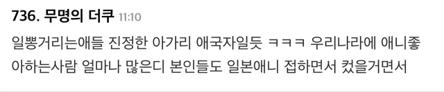 또 "일본애니" 어쩌고 "일뽕"어쩌고 까대는 댓글들 등장하며