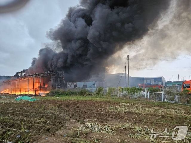 12일 오후 2시 9분쯤 경기 화성시 정남면 괘랑리의 한 단층짜리 플라스틱 포장용기 보관 창고에서 불이 났다.