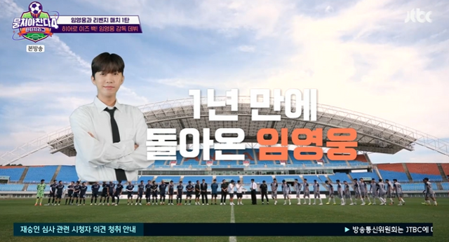 이날 임영웅은 1년 전 약속한 리벤지 매치를 위해 역대 최다 출연인 네 번째로 ‘뭉쳐야 찬다’를 찾았다.