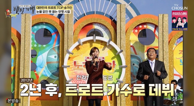 이날 송가인은 중학생 때부터 시작한 판소링에서 트롯으로 전향한 이유에 대해 “마침 진도에 ‘전국노래자랑’이 왔다. 1등을 하면서 2년 후 트롯 가수로 데뷔했다”고 말했다.