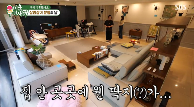 김민지 씨는 손에 쥔 포스트잇을 들고 공용 가구를 누가 가져갈지 나누자고 제안했다. 소파는 두고 갈 거지 않냐는 물음에 윤민수는 “소파를 왜 두고 가냐. 천갈이 해서 내가 쓰려고 했다”고 말했다.