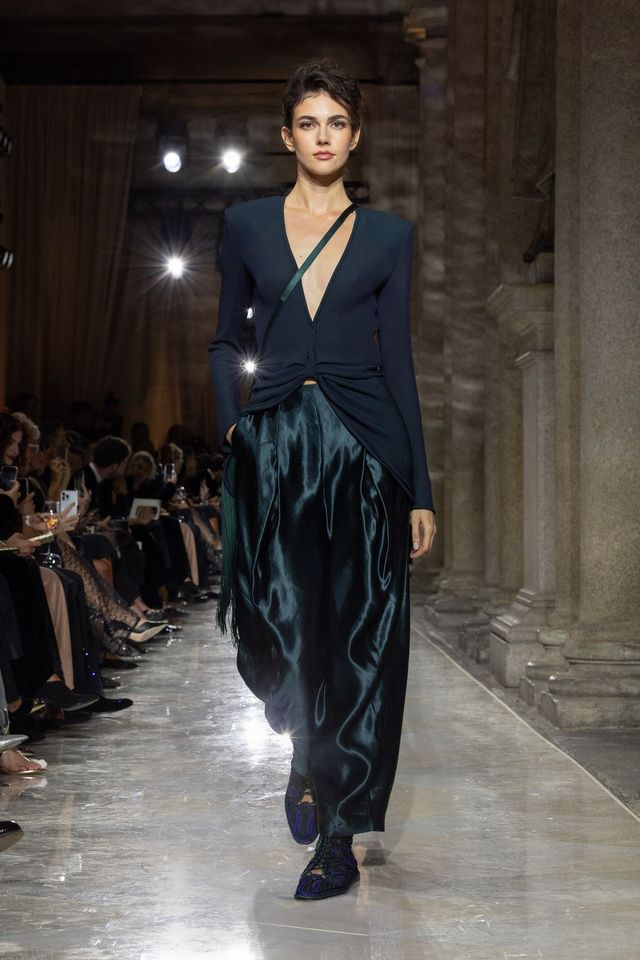 특히 브레라 미술관의 회화, 조각, 색채와 질감이 아르마니의 패브릭, 드레이프, 실루엣과 교차하며 예술과 패션의 대화를 만들어냈는데요. 테일러링의 재해석, 독창적인 장식 감각, 뉴트럴하지만 단조롭지 않은 색조 그리고 기법과 마감, 자수에서 드러나는 미학적 풍부함이 두드러졌습니다. 이러한 요소들은 조르지오 아르마니의 절제된 창의성이 드러나는 과정을 보여주며 ‘절제’라는 개념 자체를 새롭게 정의했죠.