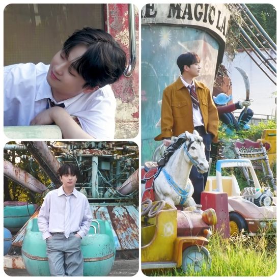 영상 속 이찬원은 오래된 놀이공원에서 회전목마에 오르고, 열차 놀이기구에 탑승하는 등 다양한 포즈를 선보였다.