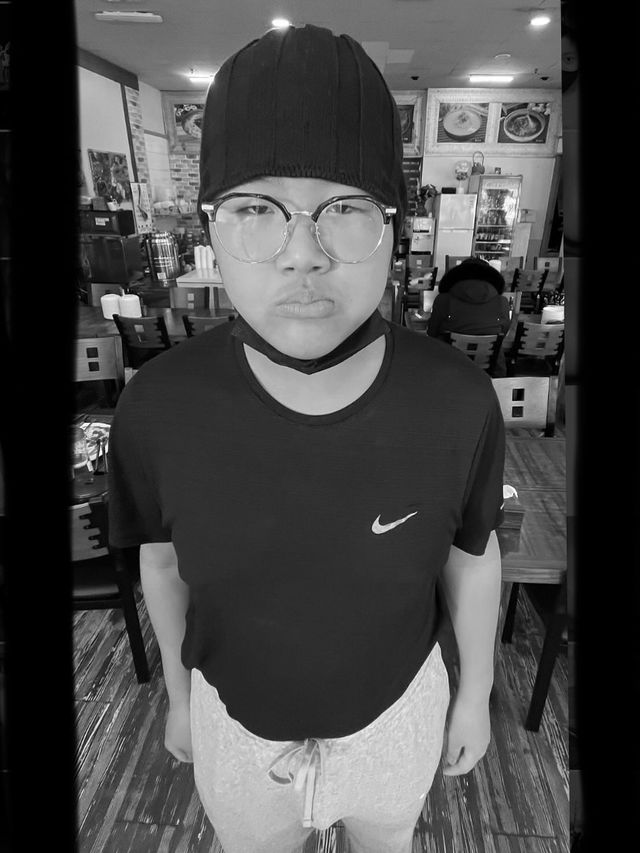 사진 속에는 퉁퉁 부은 얼굴에 안경을 쓰고 검은 모자를 쓴 준수 군의 모습이 담겨 있다. 툭 튀어나와 보이는 배까지 일부러 못생김을 추구한 듯한 비주얼이 눈길을 끈다.