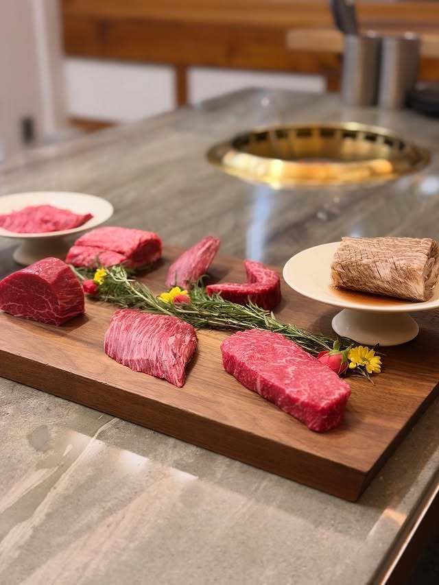또 다른 사진에는 레스토랑 테이블 위 고급스러운 한우 코스가 담겨 눈길을 끌었다. 김사랑은 식사 자리에서도 군살 하나 없는 몸매와 작은 얼굴, 도자기 피부로 시선을 사로잡았다.