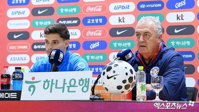 구스타보 알파로 파라과이 축구대표팀 감독과 키플레이어 다미안 보바디야는 13일 고양종합운동장에서 진행된 대한민국과의 친선 경기 사전 기자회견을 가졌다.