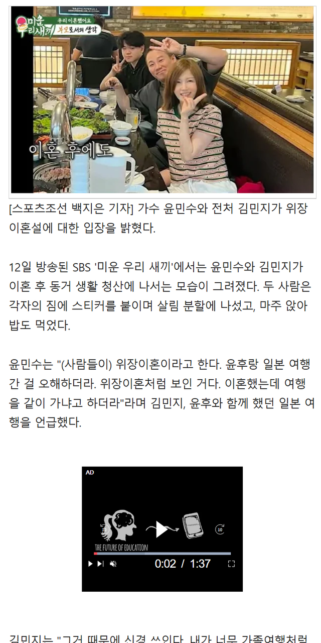 윤민수 부부 이혼했지만 함께 사는근황