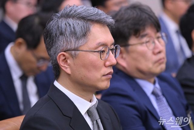 (오른쪽 첫 번째, 두 번째)이상화 동해종합기술공사 부사장과 류긍선 카카오모빌리티 대표가 13일 오후 서울 여의도 국회 국토교통위원회에서 열린 국토교통부·행정중심복합도시건설청·새만금개발청에 대한 2025년도 국정감사에 증인으로 출석해 자리하고 있다. 사진=강민석 기자 kms@newsway.co.kr