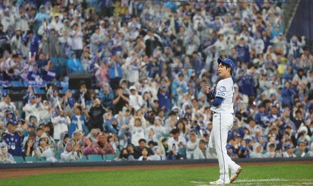 6회를 넘어 7회까지 마운드를 지킨 원태인은 투구수 100개를 넘긴 7회초 2아웃에서 마침내 교체됐다. 홈 팬들이 마운드를 내려오는 그에게 아낌없는 기립박수를 보냈다.