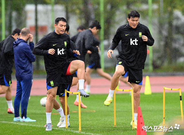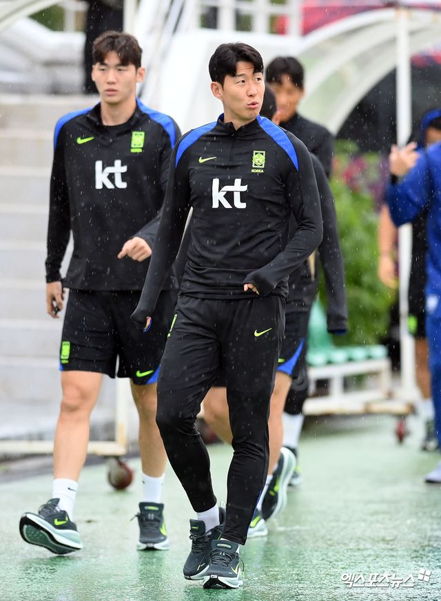 훈련장에 장대비가 쏟아졌지만, 손흥민(LAFC)을 비롯한 대표팀 선수들은 서로를 격려하며 기합을 넣고 몸을 풀었다.