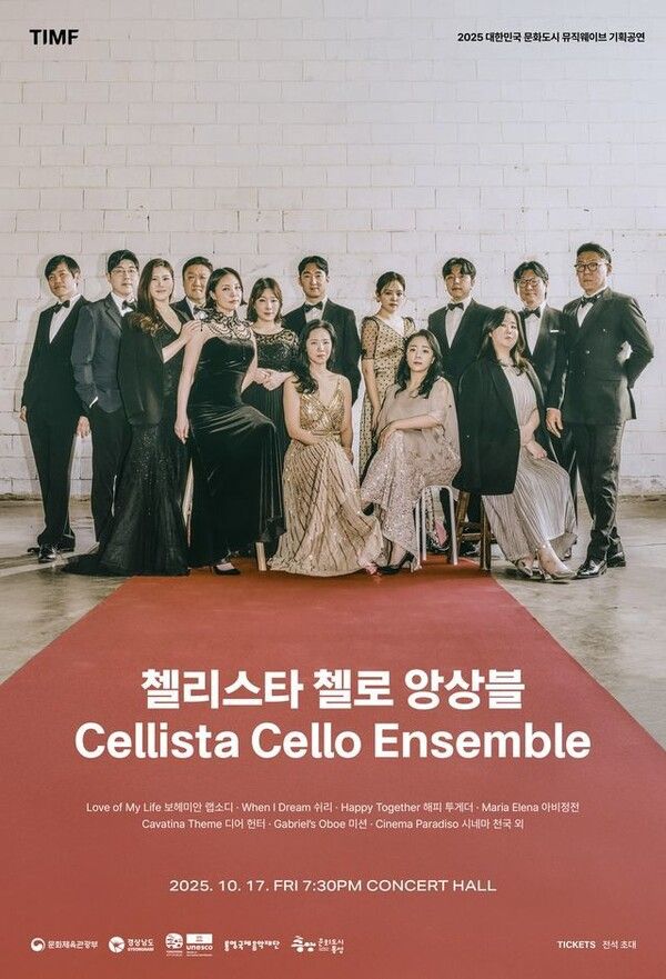 17일 오후 7시 30분, 12인의 첼리스트로 구성된 ‘첼리스타 첼로 앙상블’ 공연이 통영국제음악당 콘서트홀 무대에 오른다.