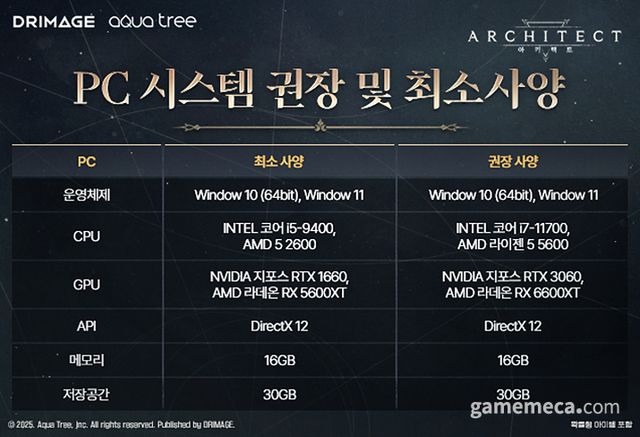 ▲ PC, 모바일 시스템 권장 및 최소사양 (사진제공: 드림에이지)