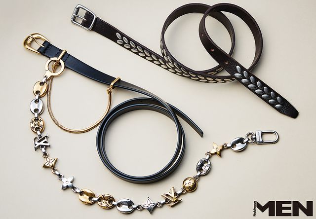 위부터_ 아몬드 스터드 벨트 Lemaire, 메탈 체인 디테일 레더 벨트 Jil Sander, LV 세일러 체인 버클 Louis Vuitton.